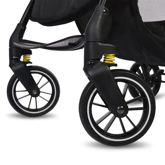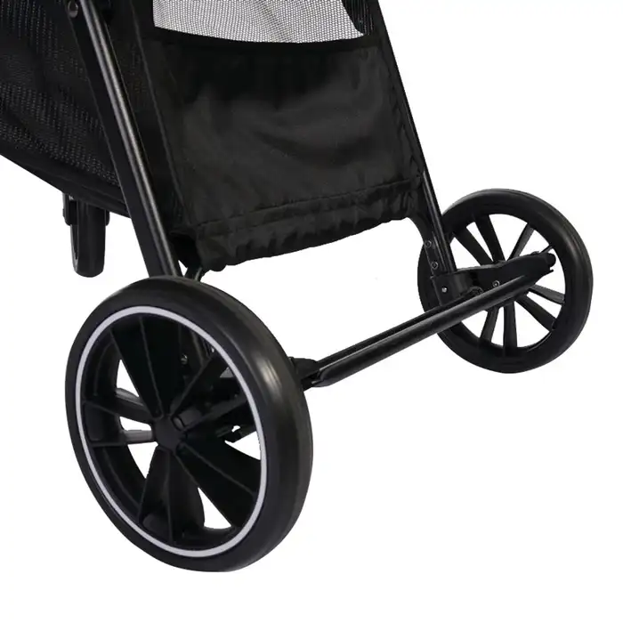 Kolicima se lako manevriše zahvaljujući prednjim točkovima koji se okreću i fiksnim zadnjim točkovima sa kočionim sistemom, što ih čini pogodnim za sve terene, čak i u gužvi. Sa dimenzijama točkova prednji Ø 15,5cm i zadnji Ø 17,5cm, ova kolica su spremna da vas prate u svakodnevnim avanturama.