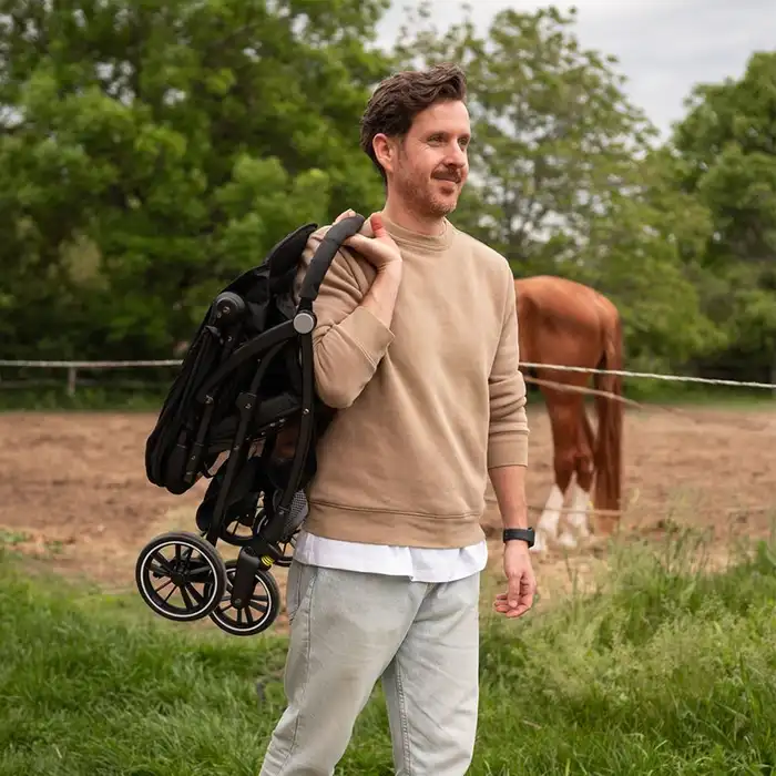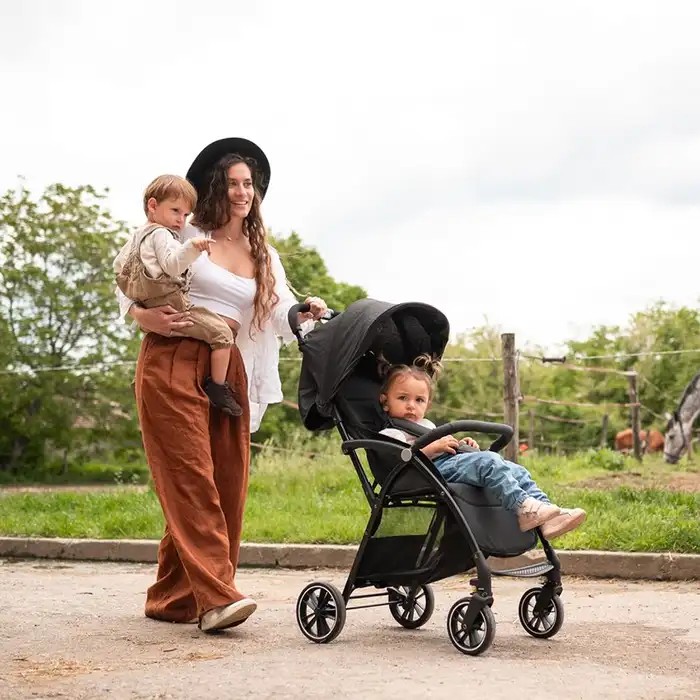 Sigurnosni pojasevi u 5 tačaka i odvojiva sigurnosna prečka obezbjeđuju maksimalnu sigurnost vašeg djeteta tokom svake vožnje. Pored toga, prostrana korpa za kupovinu i visokokvalitetni tekstil nude potrebnu udobnost i praktičnost za sve vaše dnevne aktivnosti.